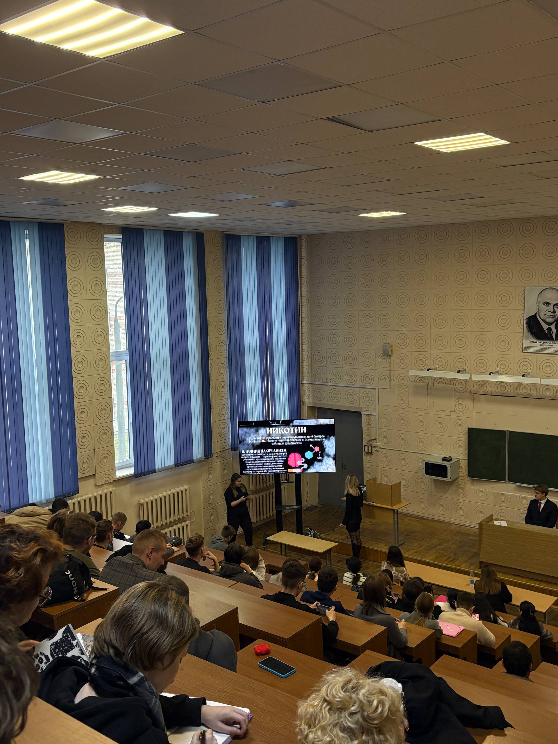 А в ГГУ им. Ф.Скорины в рамках взаимодействия студенческих советов университетов наши активисты выступили перед студентами с презентацией «Коктейль из ядов: что на самом деле содержится в сигаретном дыме и как он разрушает ваше тело».