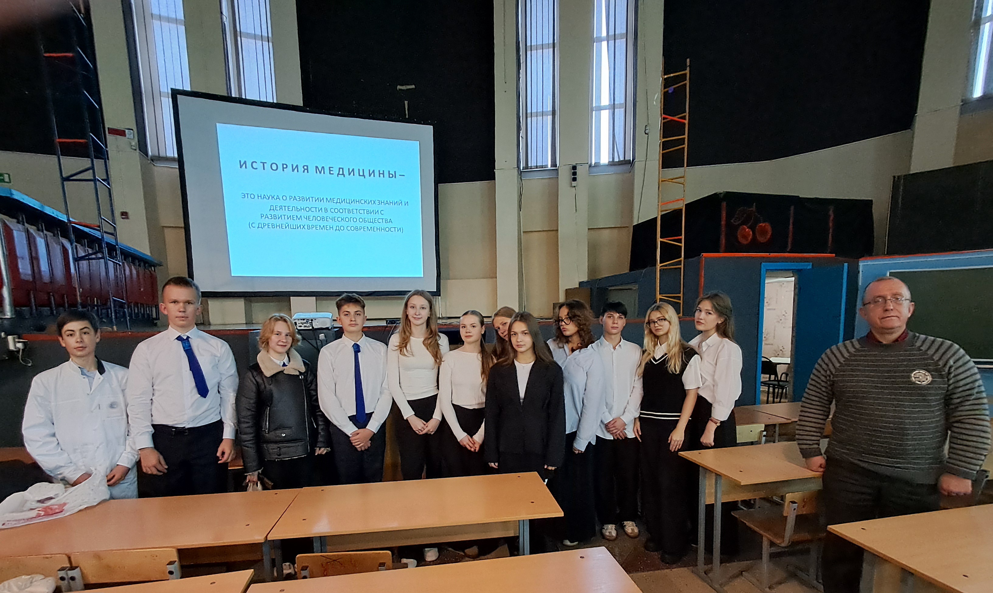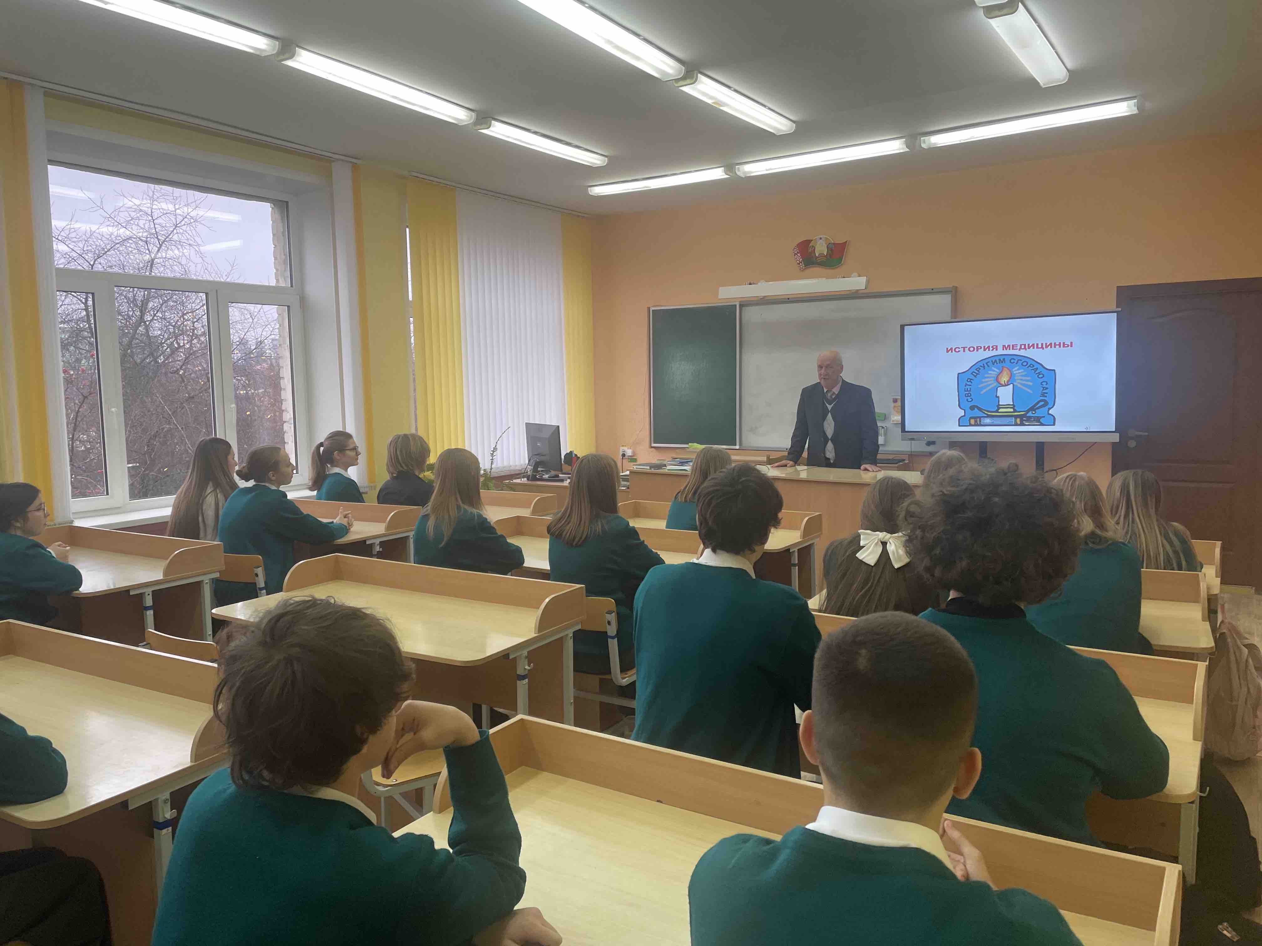 Согласно учебной программе и календарно-тематическому планированию факультативных занятий «Введение в медицинскую профессию» в ноябре преподавателями кафедры социально-гуманитарных дисциплин были проведены занятия по теме «История развития медицины» для учащихся десятых классов медицинской направленности. Встречи прошли как на базе школ и ГомГМУ, так и в онлайн-формате.