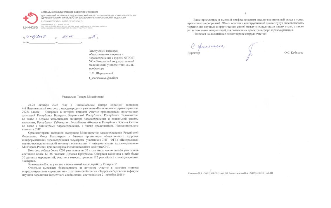 Благодарность за участие в IV Национальном конгрессе «Национальное здравоохранение