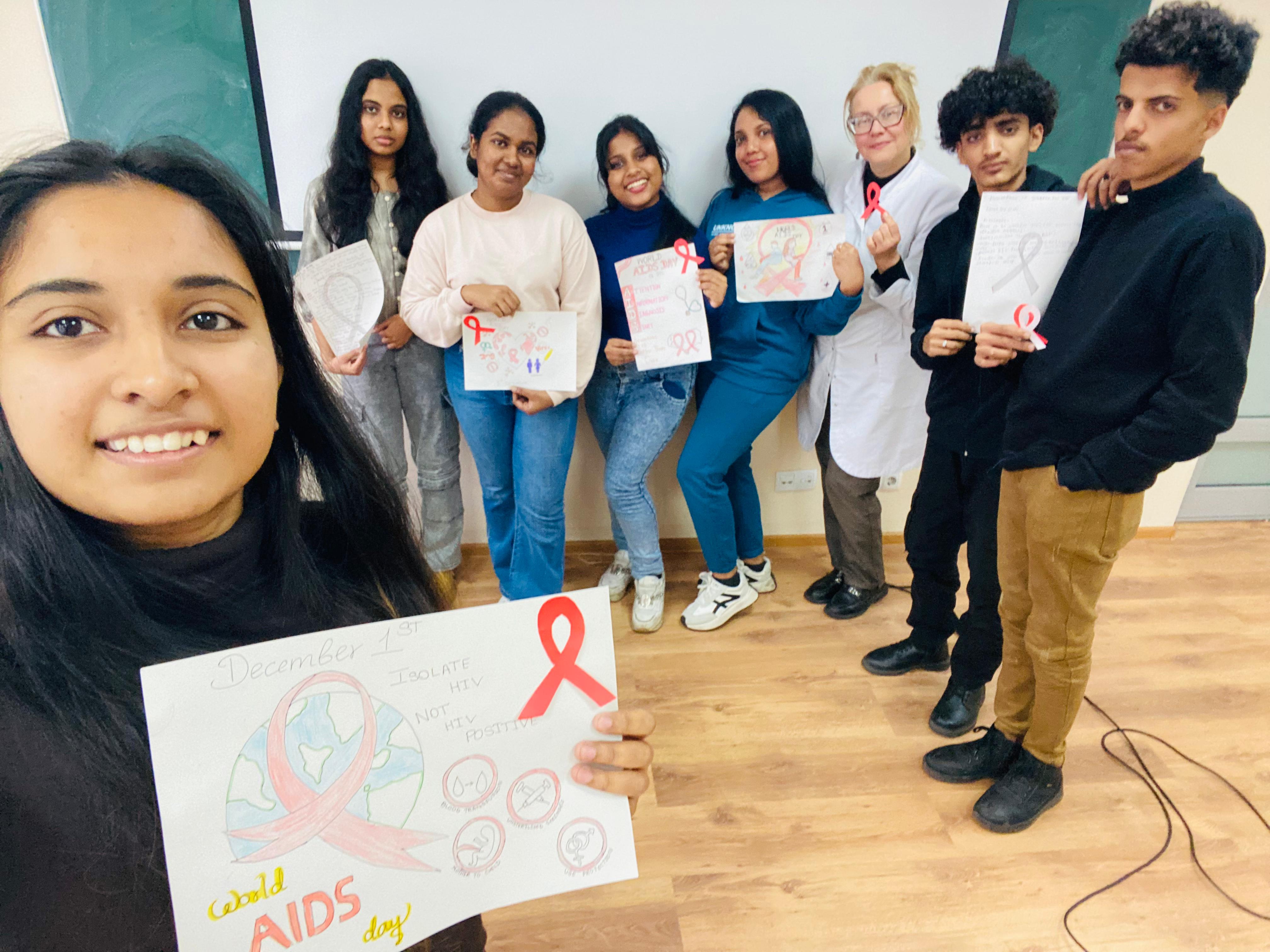 На кафедре биологии ко Всемирному дню борьбы со СПИДом была проведена акция «Красная ленточка» и викторина, приуроченная проблеме ВИЧ инфекции. Преподаватели кафедры осветили основные проблемы, вопросы и меры профилактики по ВИЧ/СПИД для первокурсников и слушателей факультета довузовской подготовки.