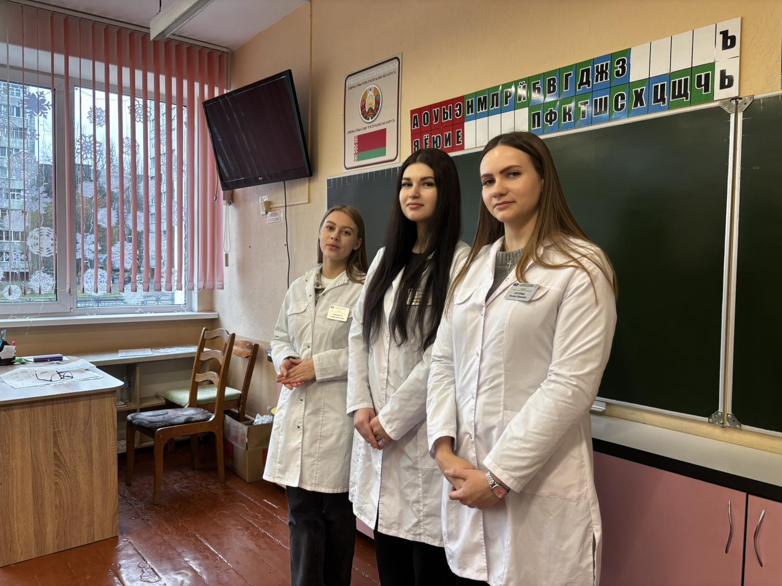 Студентки медико-диагностического факультета – Фролова Елизавета, Василисина Арина, Кострица Полина и Ковалевская Софья – провели с учащимися беседу на тему «Измерение температуры, артериального давления и пульса». Ребята внимательно слушали рассказ будущих медиков и принимали активное участие, демонстрируя отличные знания.