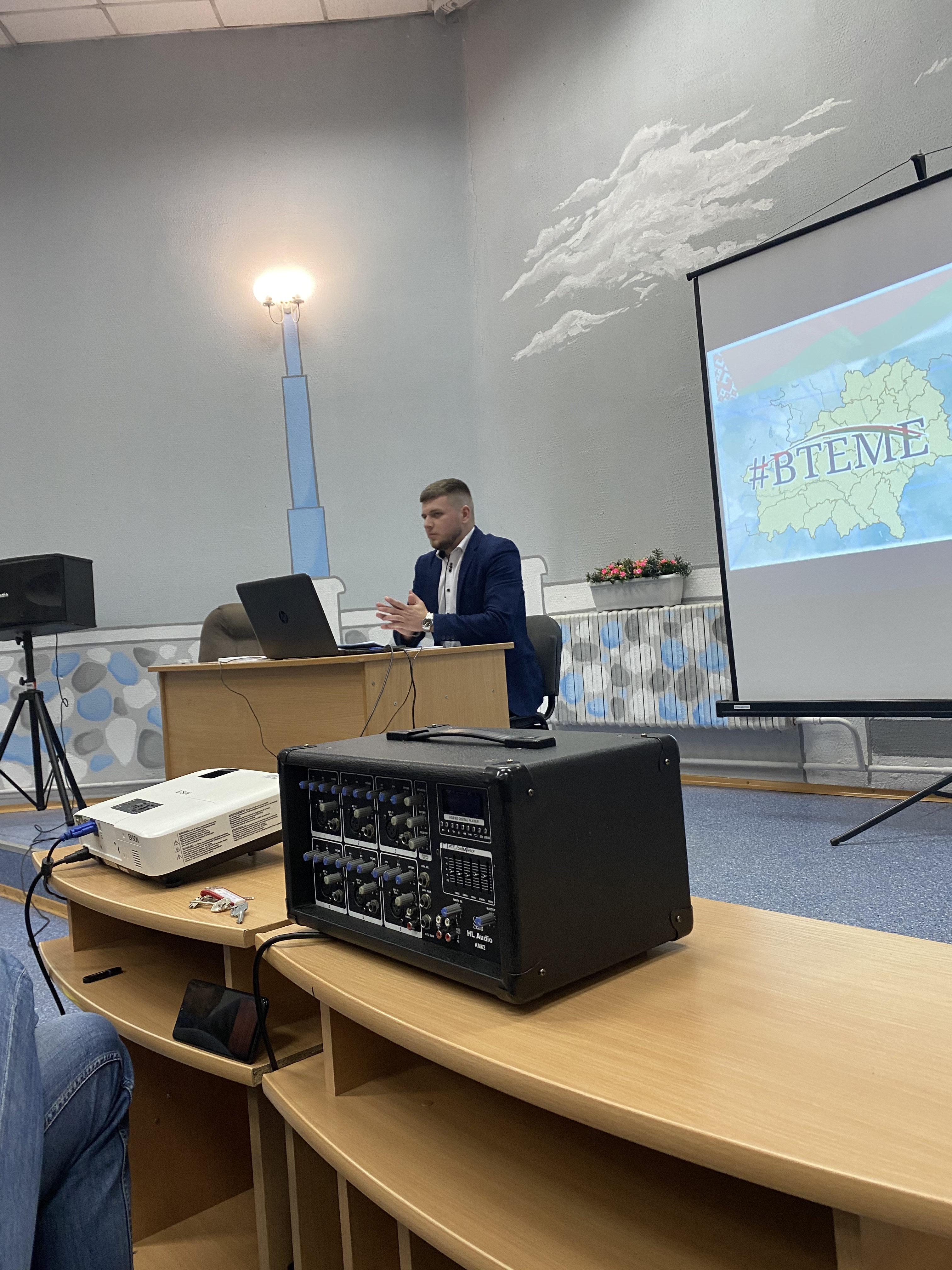 В качестве спикера выступил Александр Лысенок, студент пятого курса медико-диагностического факультета, член Молодежного совета при Гомельском областном Совете депутатов. Основная задача мероприятия – информирование молодежи о мерах государственной поддержки, реализуемых в Гомельской области.