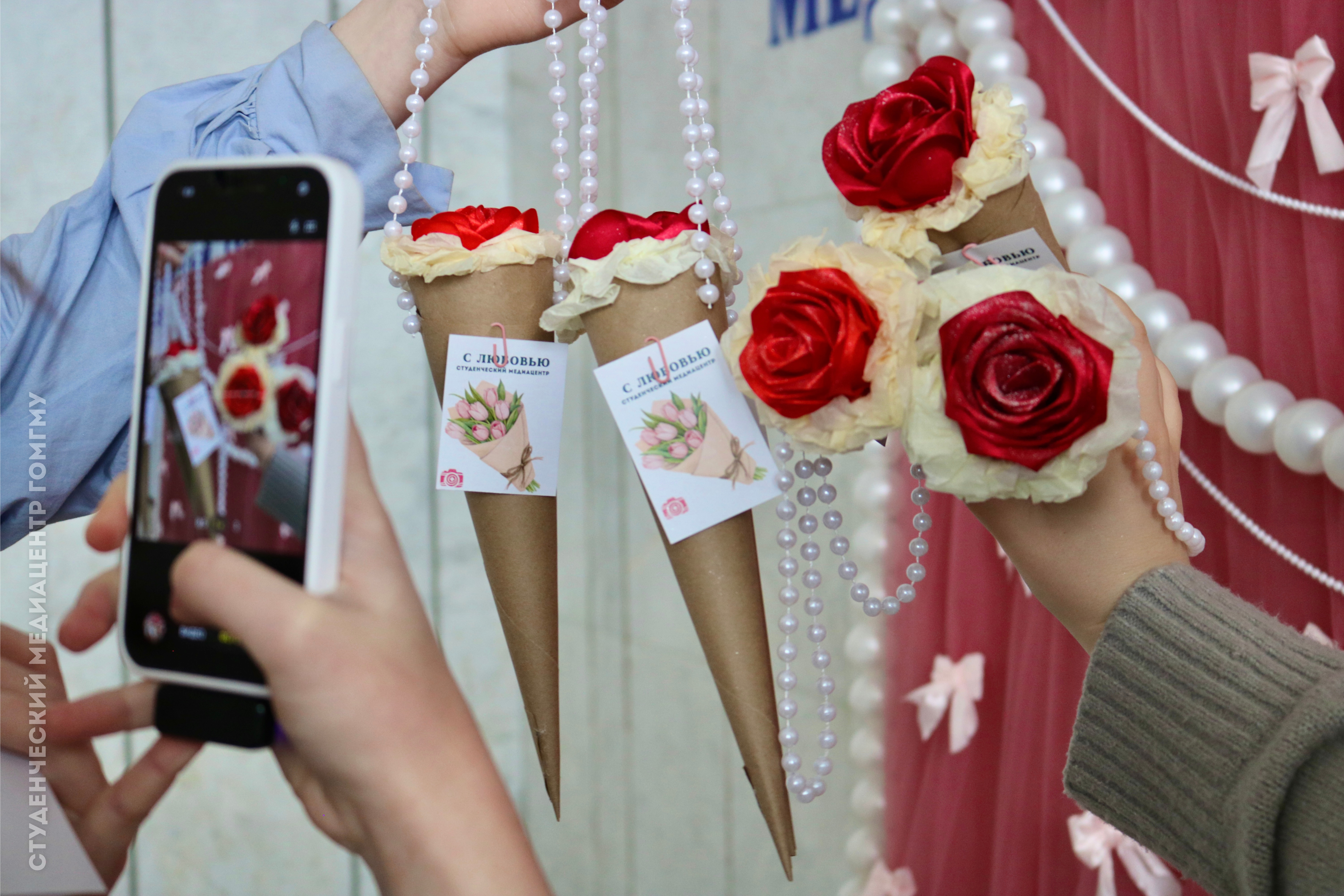 В холле корпуса на Ланге, 5 студенческий совет медико-диагностического факультета совместно с медиацентром ГомГМУ создали праздничную фотозону к 8 Марта! Этот уголок – чистый результат креативности и стараний наших студентов. Пространство получилось очень нежным, атмосферным и по-настоящему весенним. Лёгкий розовый фатин, элегантные нотки жемчуга и милые бантики – здесь каждая деталь дарит праздничное настроение! Снимайте самые тёплые фото, публикуйте и не забывайте отмечать аккаунт медико-диагностического факультета в Инстаграмм.