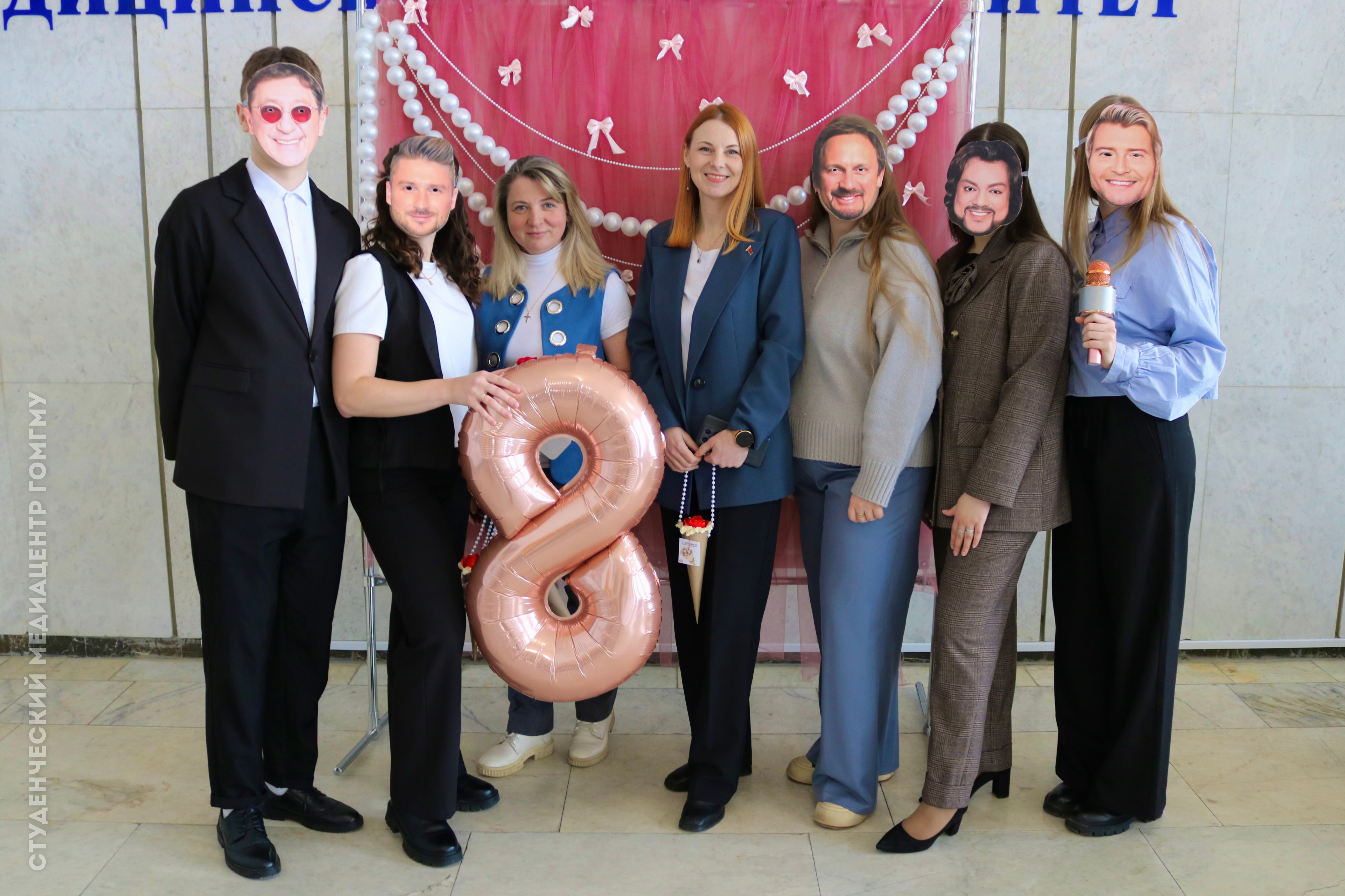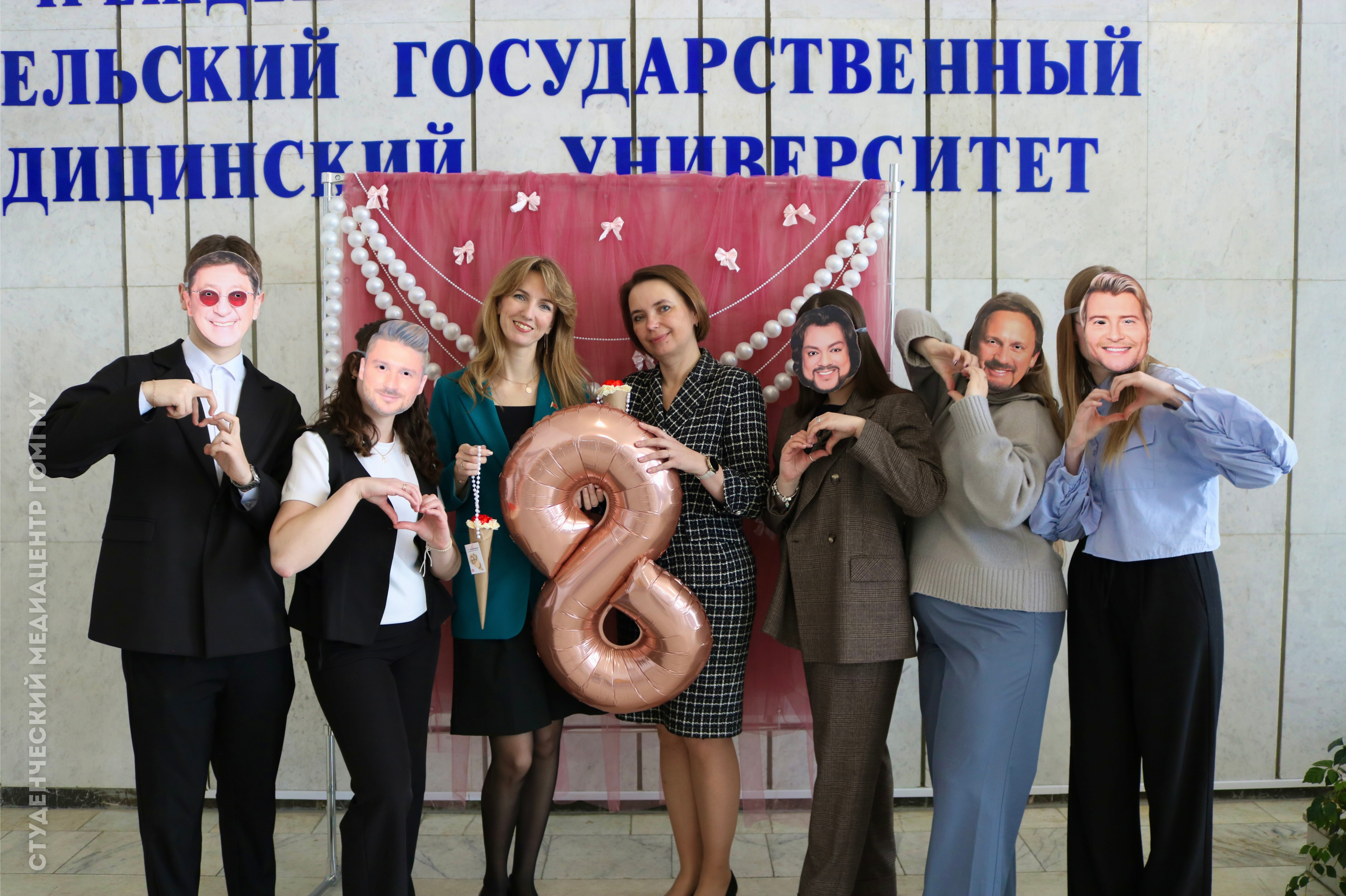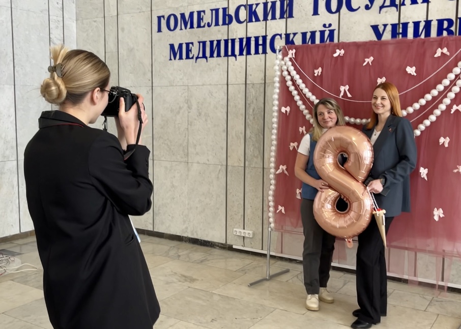 А в день акции в стенах ГомГМУ слышались песни известных и любимых исполнителей! Наших дорогих дам ждало поздравление от звезд эстрады, фото с ними на фотозоне и вручение прекрасных подарков!