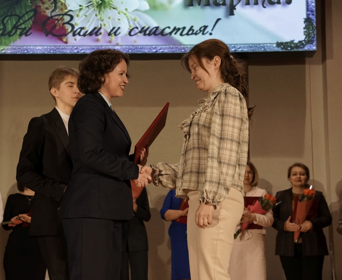 Милые дамы нашего университета, как озвучила ректор на торжественном собрании, порядка 70% нашего коллектива составляют женщины. Пусть вас не подводит здоровье! А настоящей надежной опорой в жизни будет крепкая поддержка близких. Любви, радости и счастья!