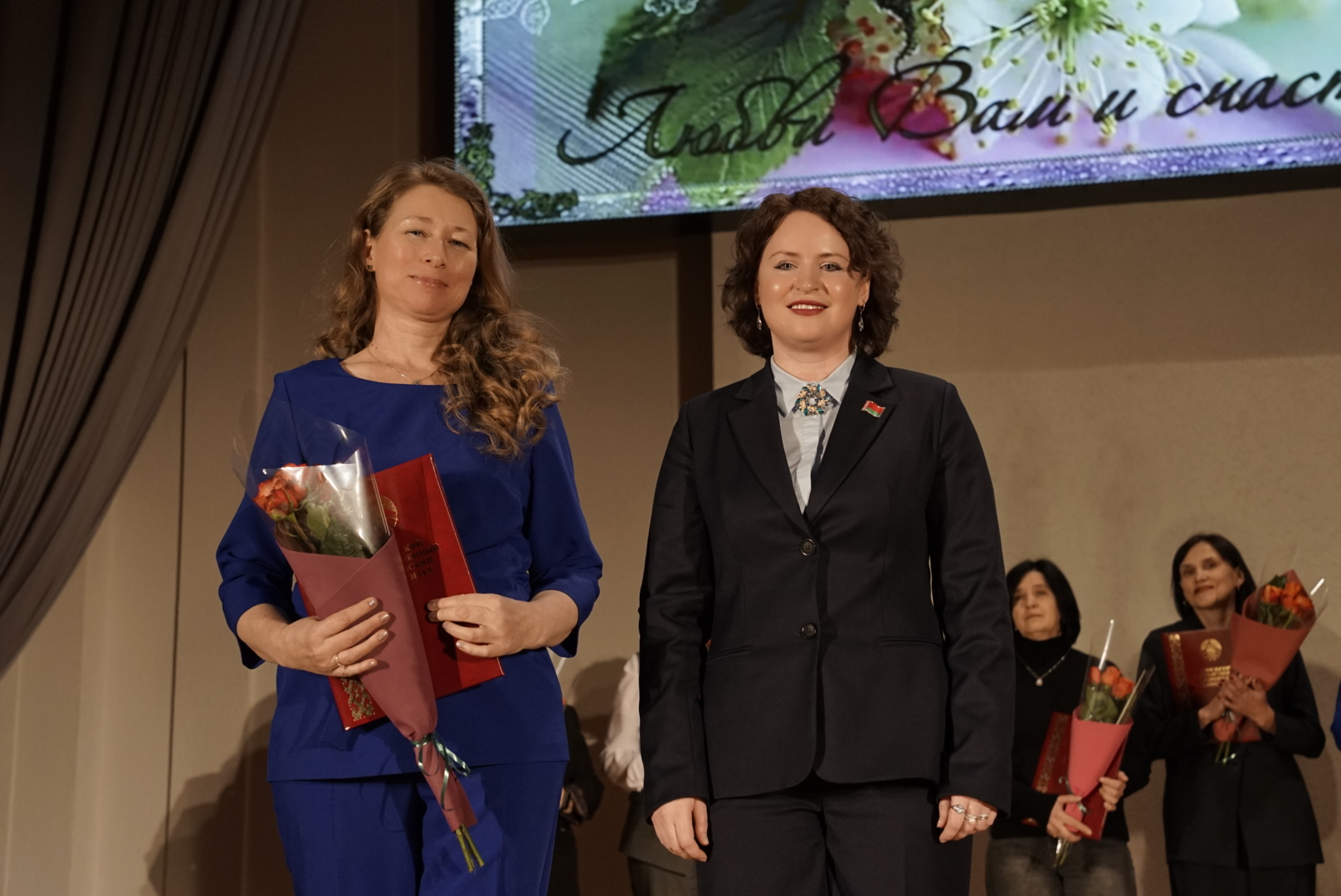 Как дань уважения и почтения к великому материнскому труду, Ирина Вячеславовна вручила Благодарности университета многодетным мамам: преподавателю кафедры физвоспитатения и спорта Наталье Ивановне Сергеенко и студентке лечебного факультета Надежде Рачковской.
