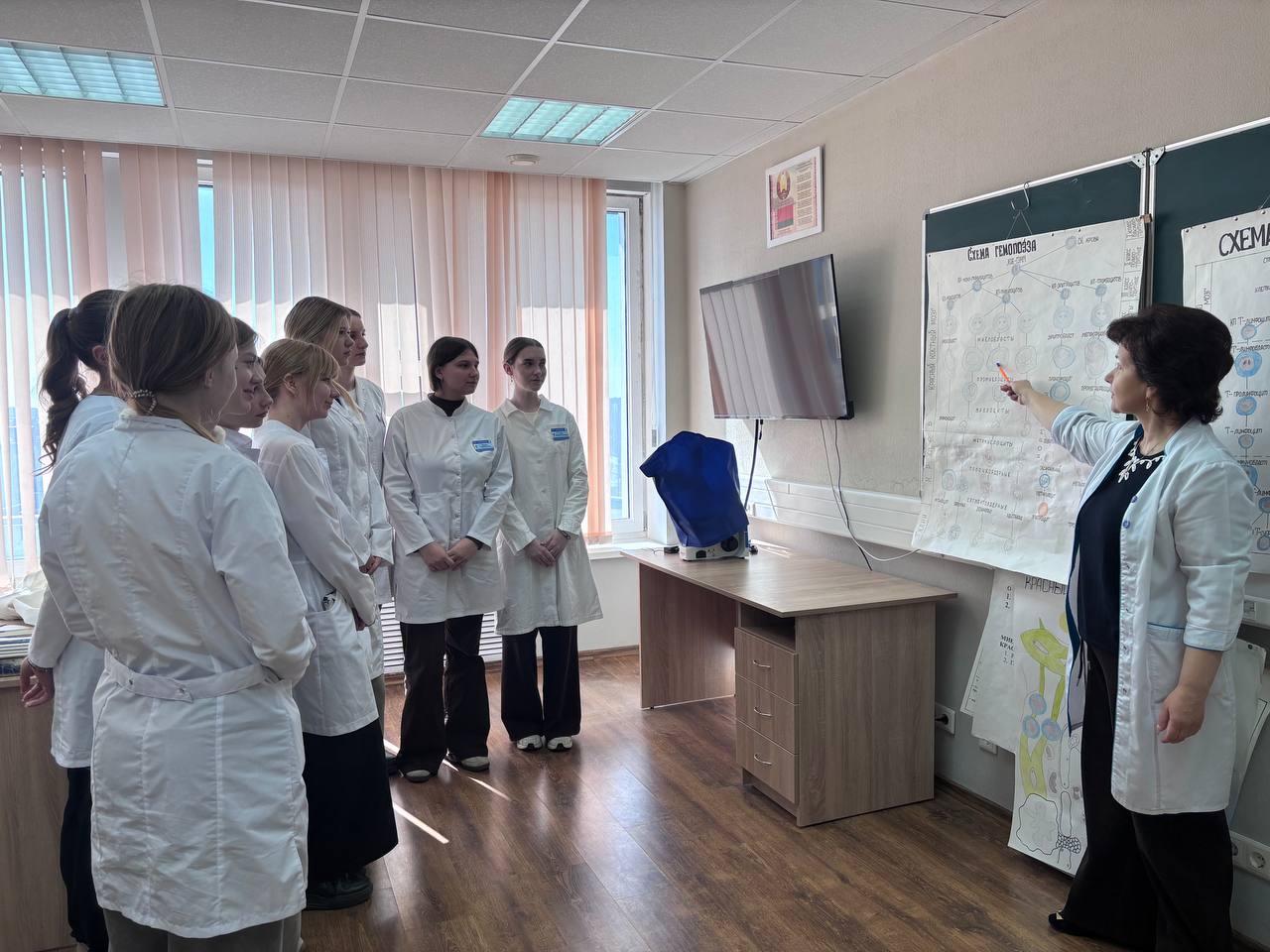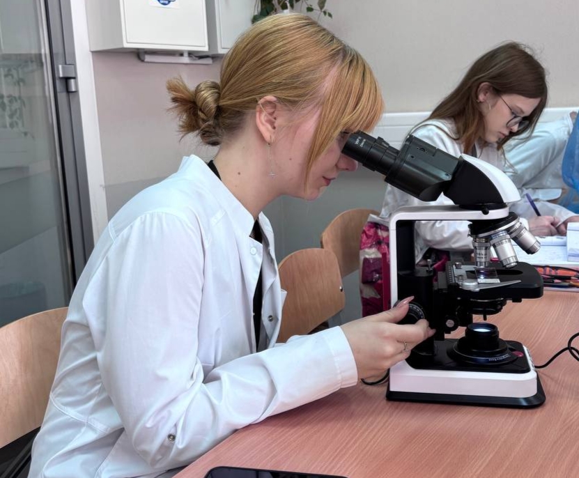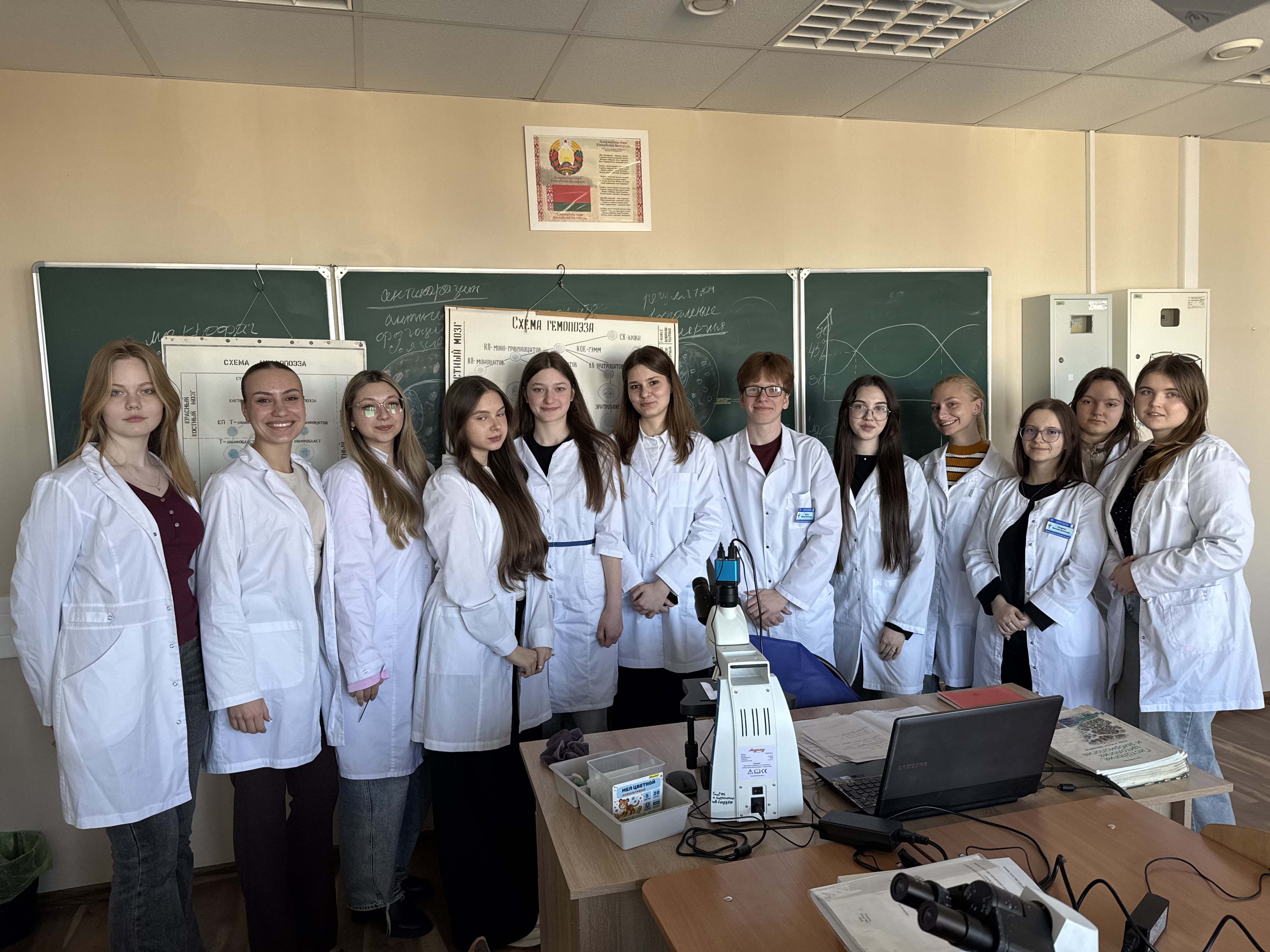 Ангелина Владимировна Моцар и Екатерина Игоревна Рудакова, учащиеся  Гомельского городского лицея №1, в составе группы Д-110 побывали на занятии по гистологии, цитологии и эмбриологии. Обсуждали там кроветворение и то, как работает иммунитет на клеточном уровне.