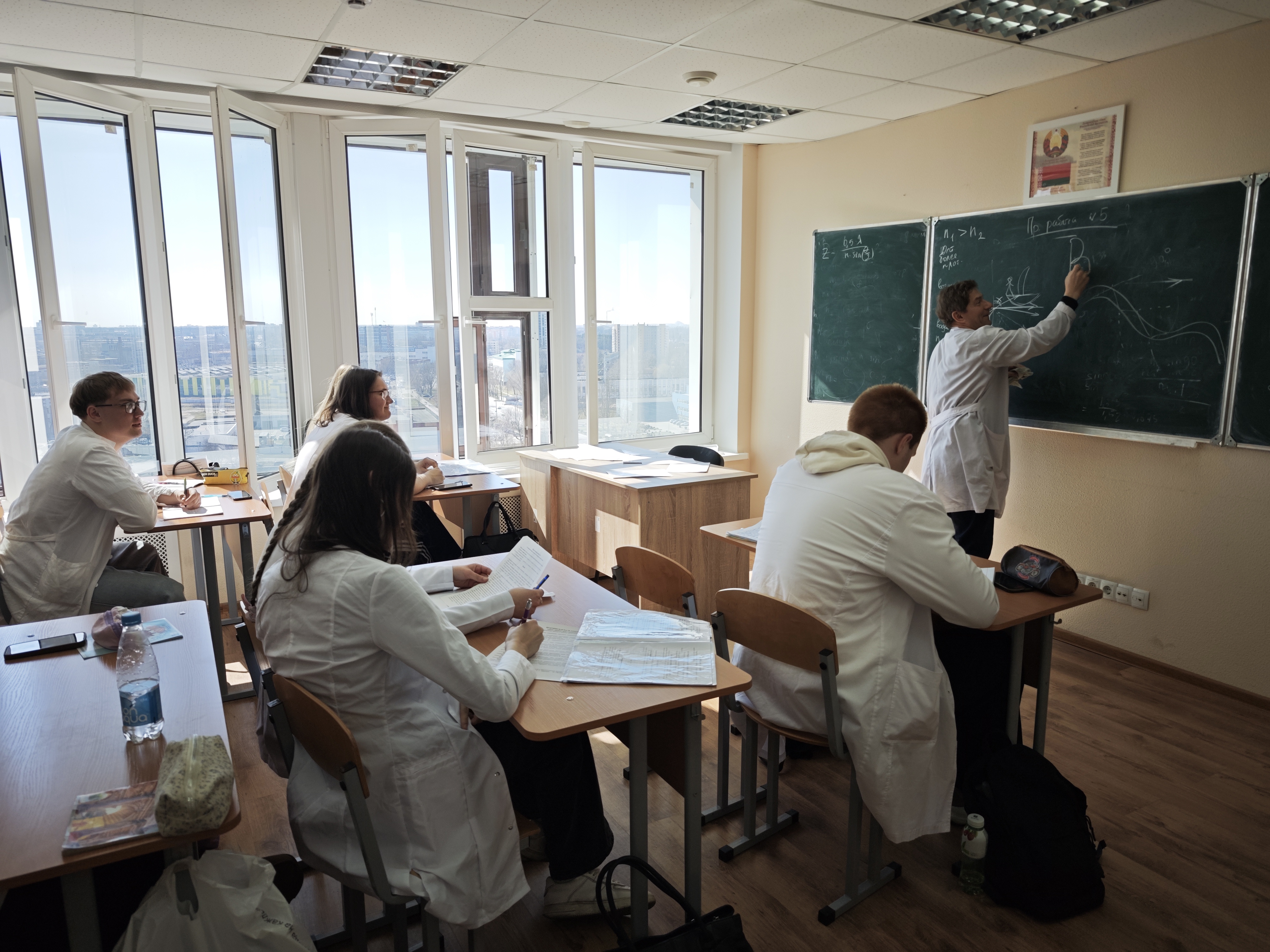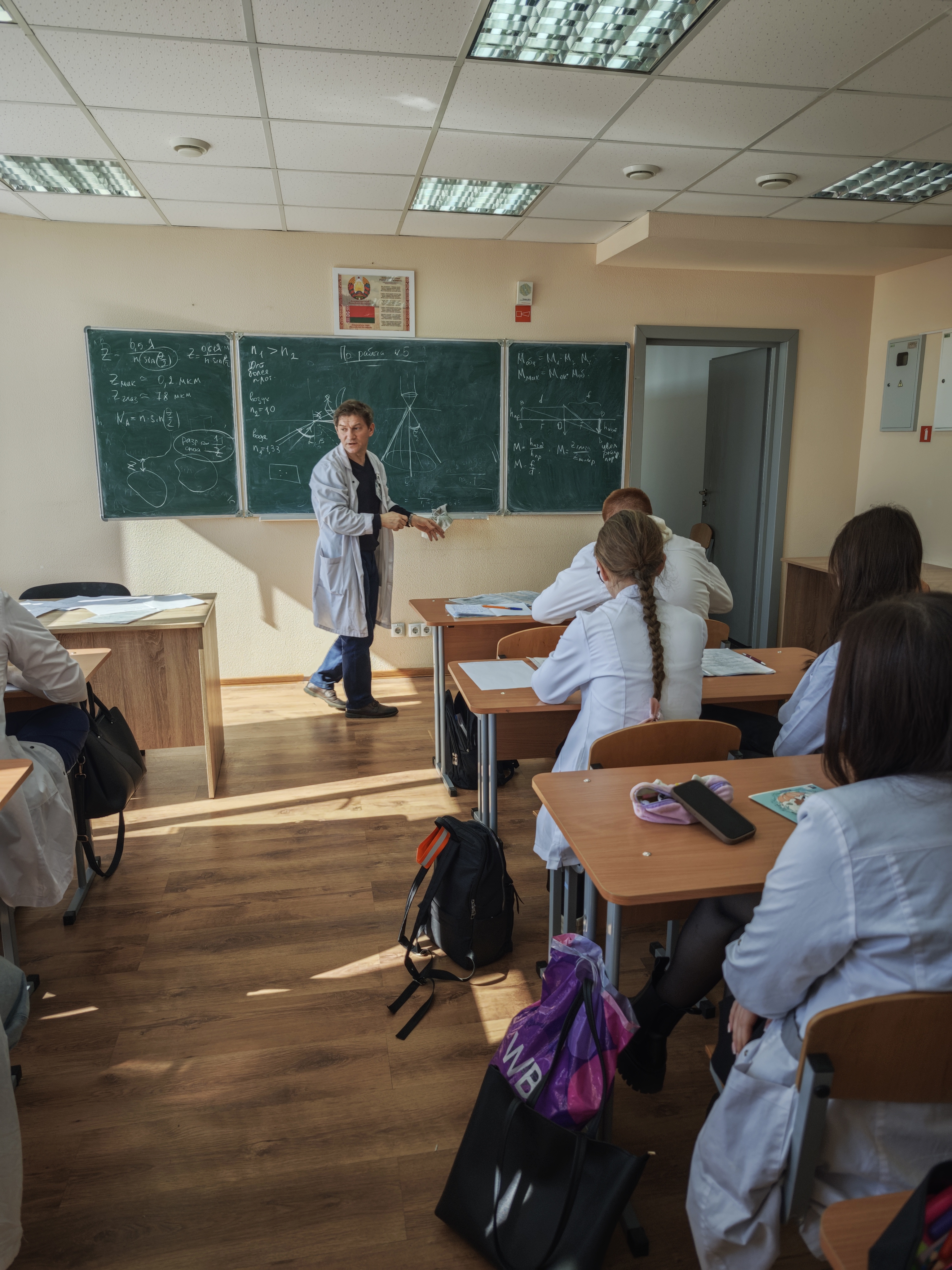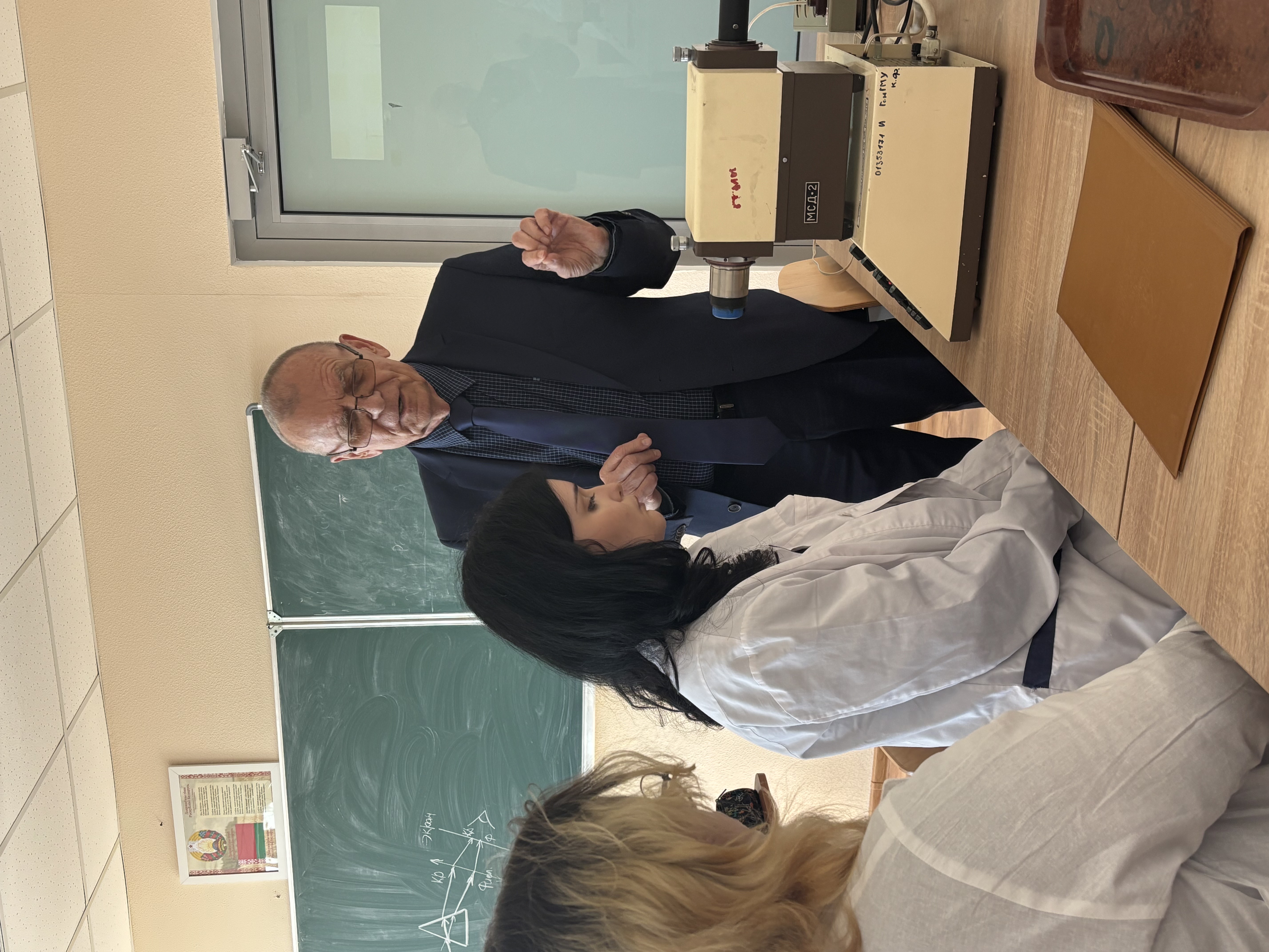 Десятиклассники Гимназии № 71 г. Гомеля Ксения Абабурко и Виктория Пантюхова попали на практическое занятие со студентами группы Л-119 по теме «Геометрическая оптика. Оптическая система глаза».
