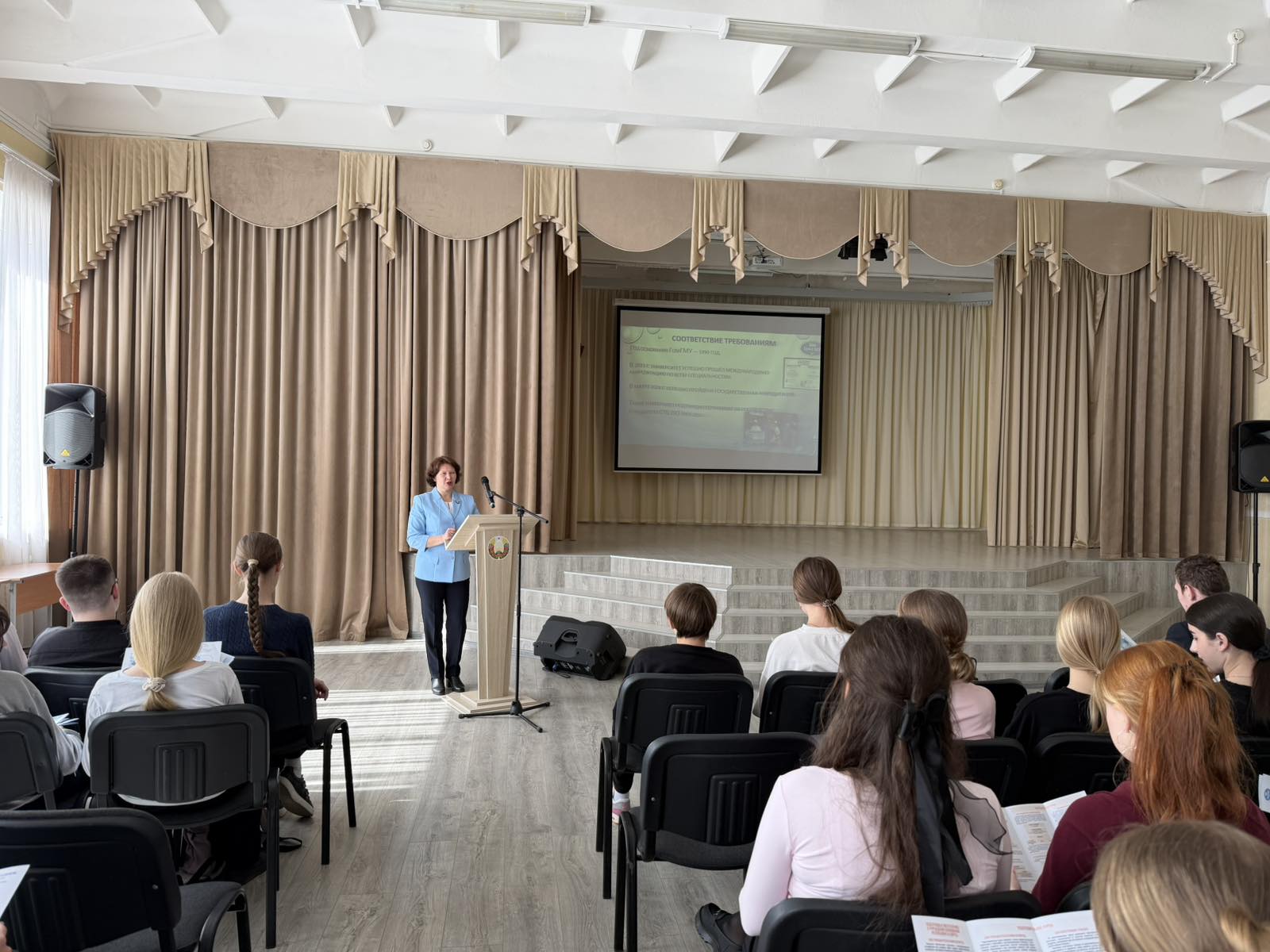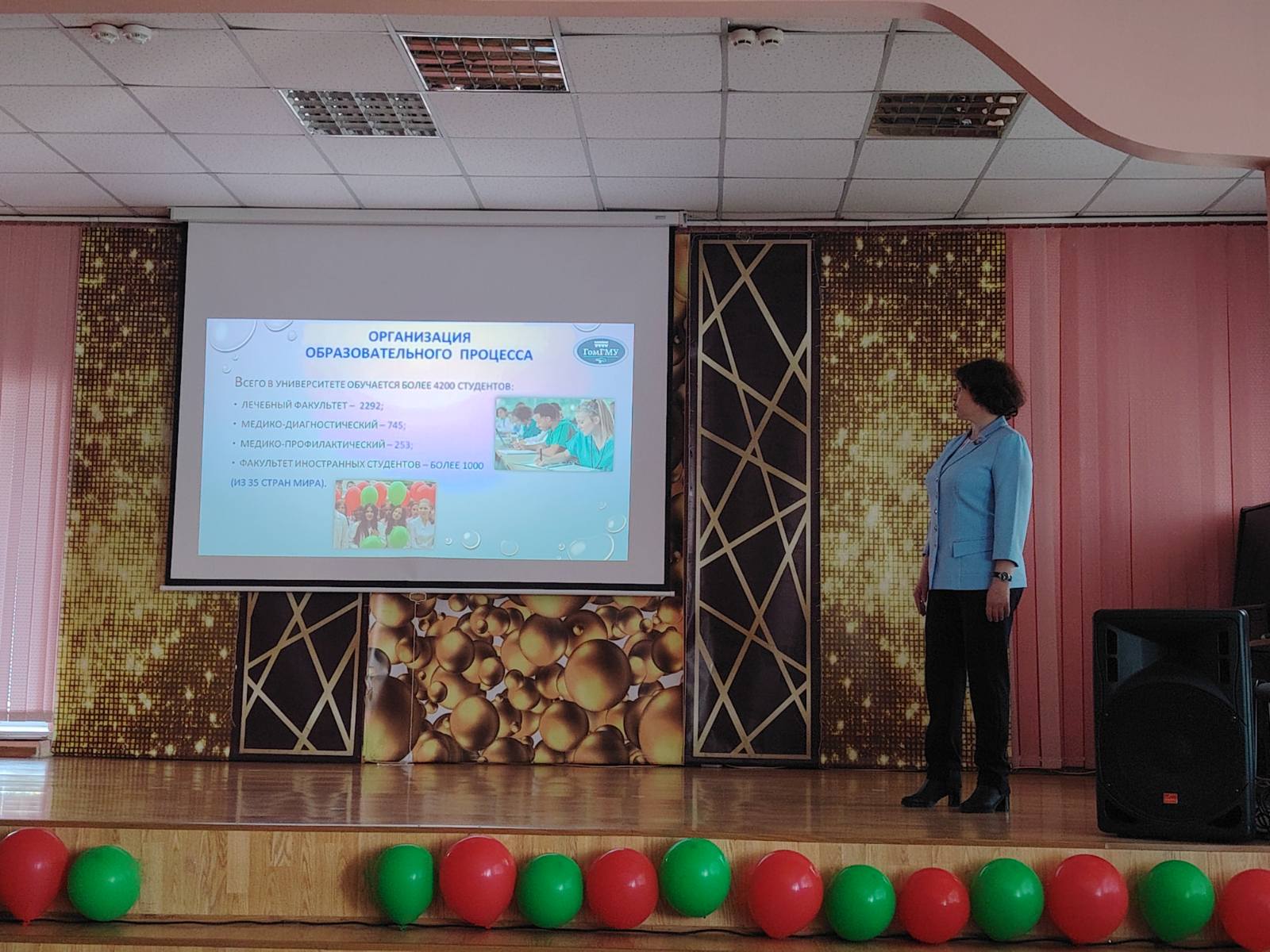 Елена Ивановна рассказала ребятам о нашем университете, о том, как организован учебный процесс в ГомГМУ, каким врачом можно стать по окончании университета. Особый интерес со стороны будущих абитуриентов вызвал рассказ о предстоящей приёмной кампании, правилах поступления, целевом наборе и необходимых документах. Также Елена Ивановна акцентировала внимание на студенческих возможностях: стипендиях, стажировках и участии в волонтёрских акциях помощи пациентам. Школьники активно задавали вопросы о вступительных испытаниях, перспективах трудоустройства после окончания медуниверситета.