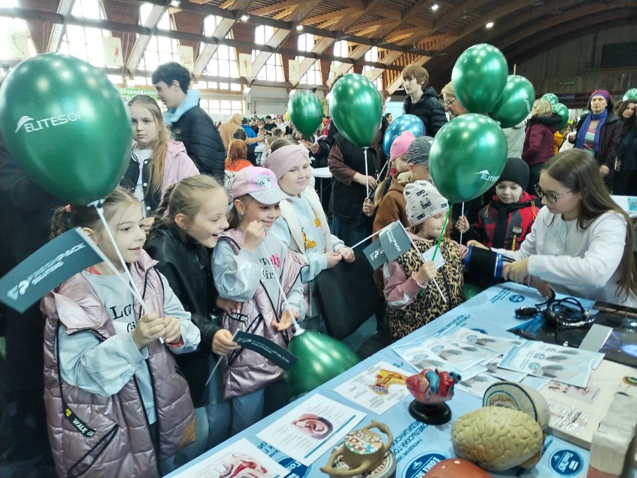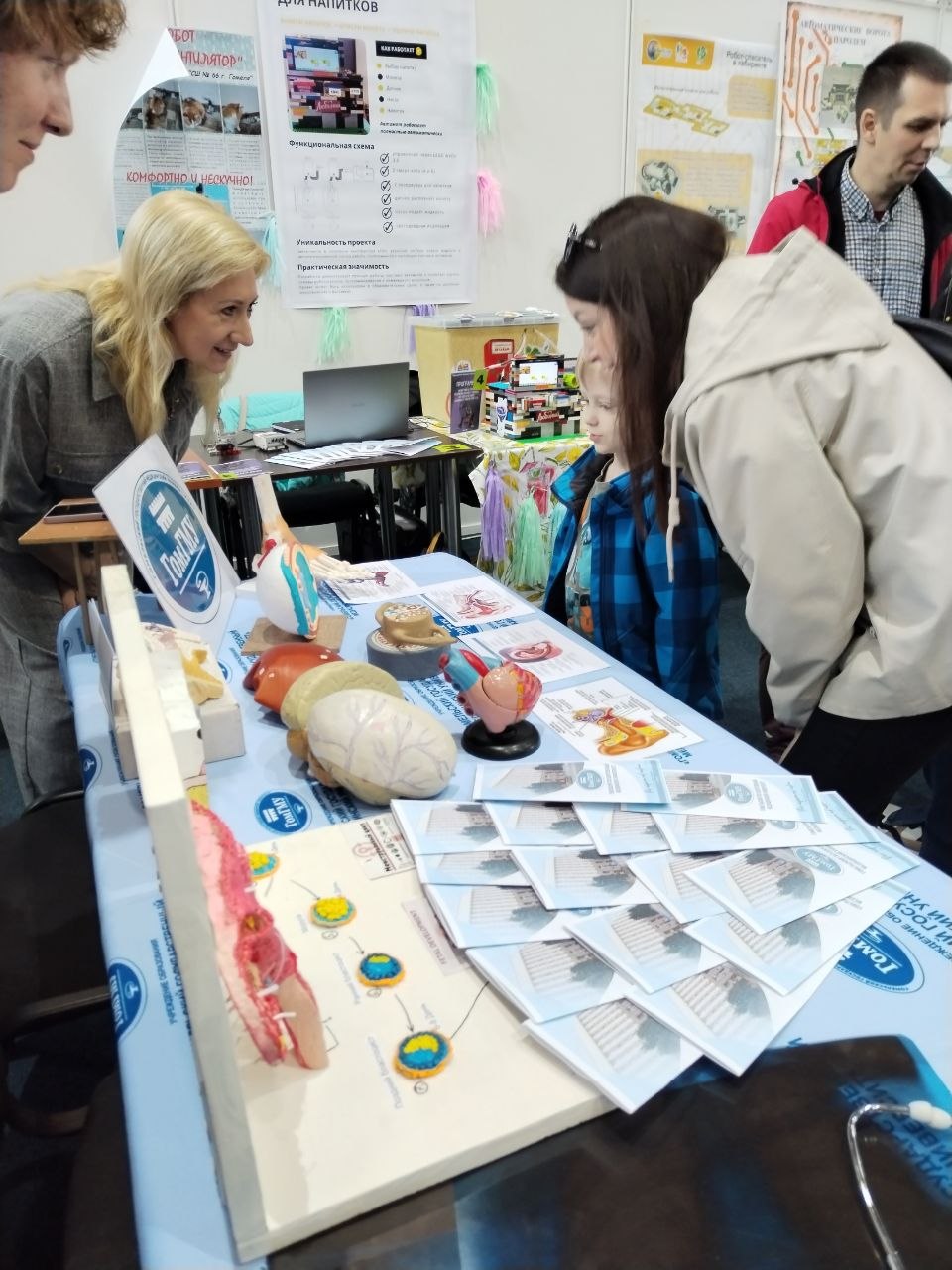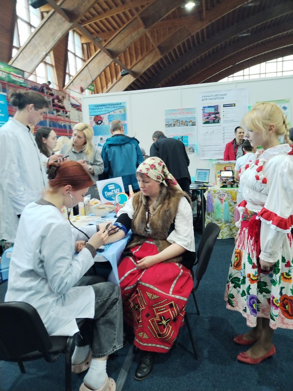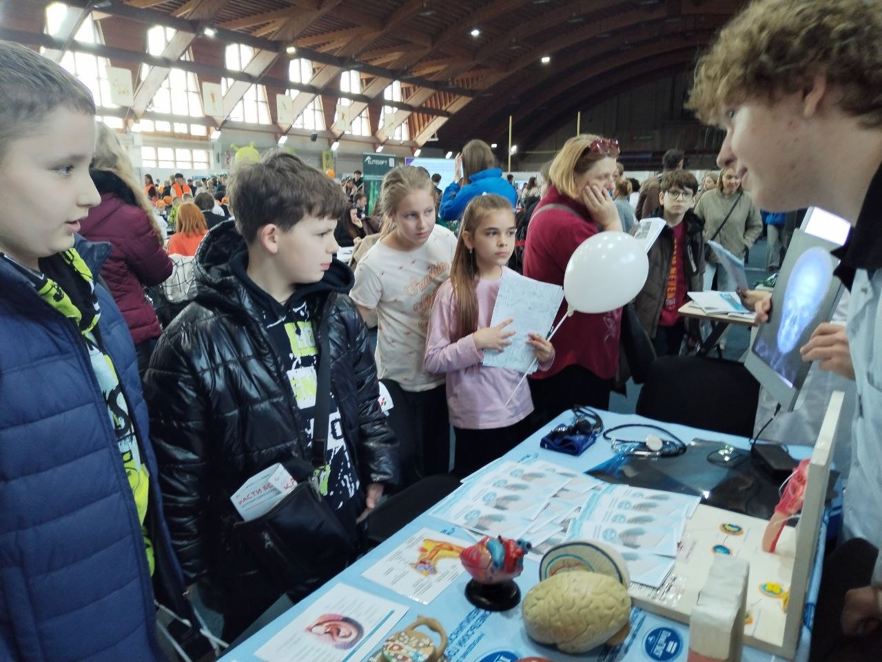 Гомельский государственный медицинский университет представили декан факультета довузовской подготовки Н.П.Тимошенко, преподаватели кафедры нормальной и патологической физиологии Е.Н.Рожкова и Е.С.Сукач, а также наши студенты, которые демонстрировали гостям анатомические модели, работу портативного негатоскопа.