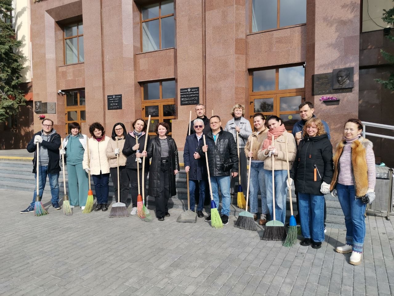Ректорат Гомельского государственного медицинского университета под руководством ректора ГомГМУ Ирины Вячеславовны Назаренко в день республиканского субботника наводил порядок на прилегающей территории корпуса по улице Ланге.