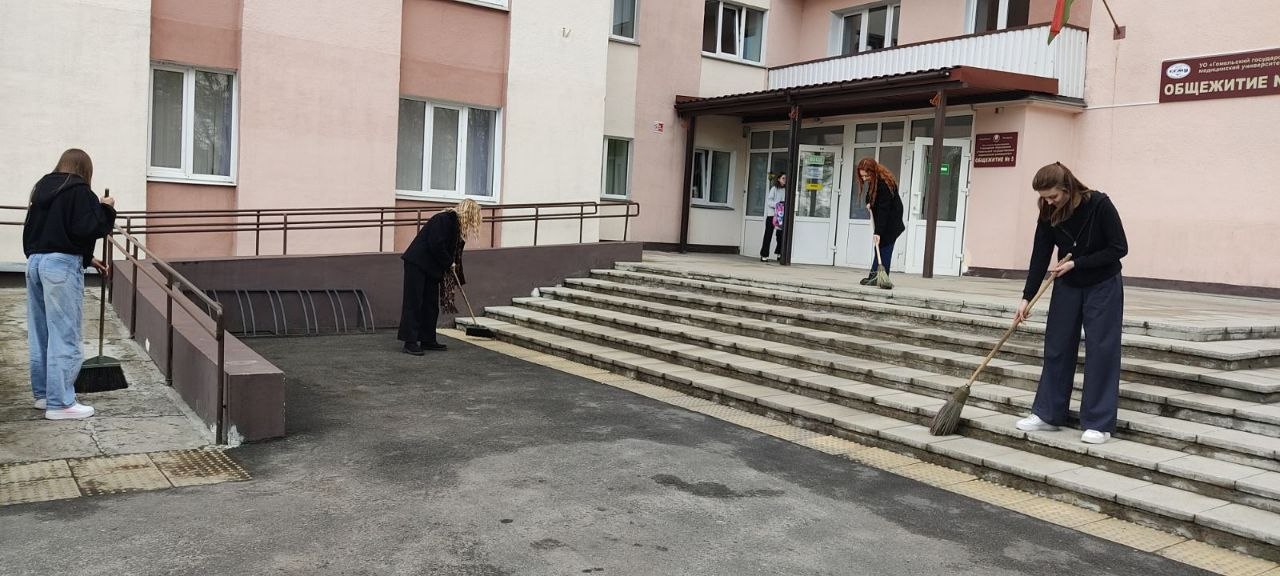 Сотрудники Гомельского государственного медицинского университета своим трудом тоже внесли лепту в общее дело республиканского субботника. Порядок наведён на территории, прилегающей к учебным корпусам и общежитиям. Студенты ГомГМУ в день республиканского субботника порядок наводили возле общежитий.