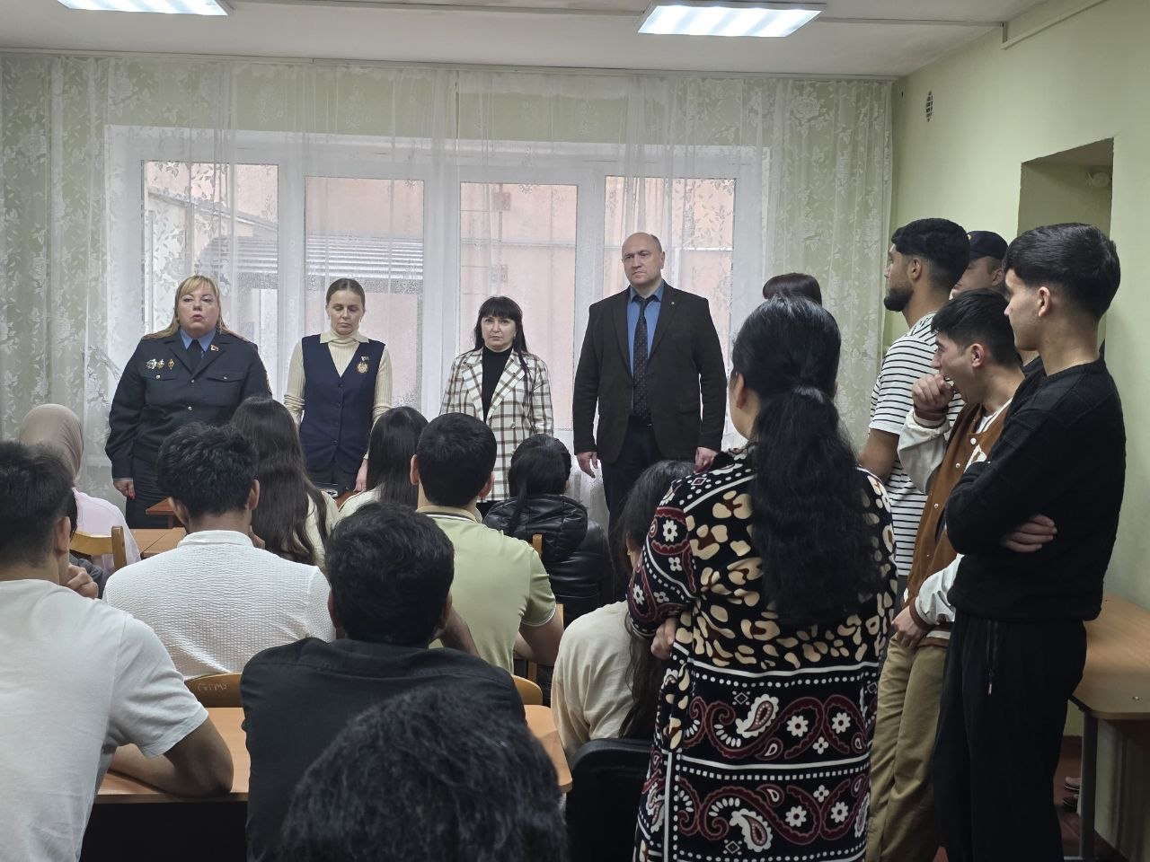 17 апреля прошла встреча начальника ОГиМ Железнодорожного района г. Гомеля Т.В.Баклановой, специалиста миграционной службы Н.В.Авчинниковой, участкового инспектора ЖОВД г. Гомеля С.В.Адаменко, с участием заместителя декана по идеологической и воспитательной работе факультета иностранных студентов Е.В.Ранкович, заместителя декана ФИС А.А.Сироткина со студентами факультета иностранных студентов. Была проведена проверка проживания студентов по месту регистрации.