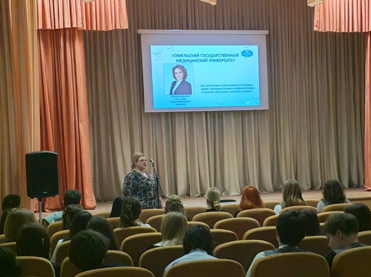 16 апреля для учащихся X–XI классов ГУО «Средняя школа №72 г.Гомеля» проведена профориентационная беседа, направленная на осознанное определение выбора будущего рода деятельности. Разговор о медицинских профессиях вела старший преподаватель кафедры фтизиопульмонологии с курсом ФПКиП Светлана Владимировна Гопоняко, которая не только рассказала о Гомельском государственном медицинском университете, но и погрузила школьников в реальную атмосферу медицинского образования, объяснив отличие учёбы в медицинском вузе от школы. Светлана Владимировна обратила внимание на то, что медицина не только тяжёлая, но и невероятно значимая, динамично развивающаяся сфера. Ребята узнали, где студенты проходят первую практику, как развито волонтёрство в медицине и на каких симуляторах отрабатываются навыки ещё до работы с реальными пациентами.