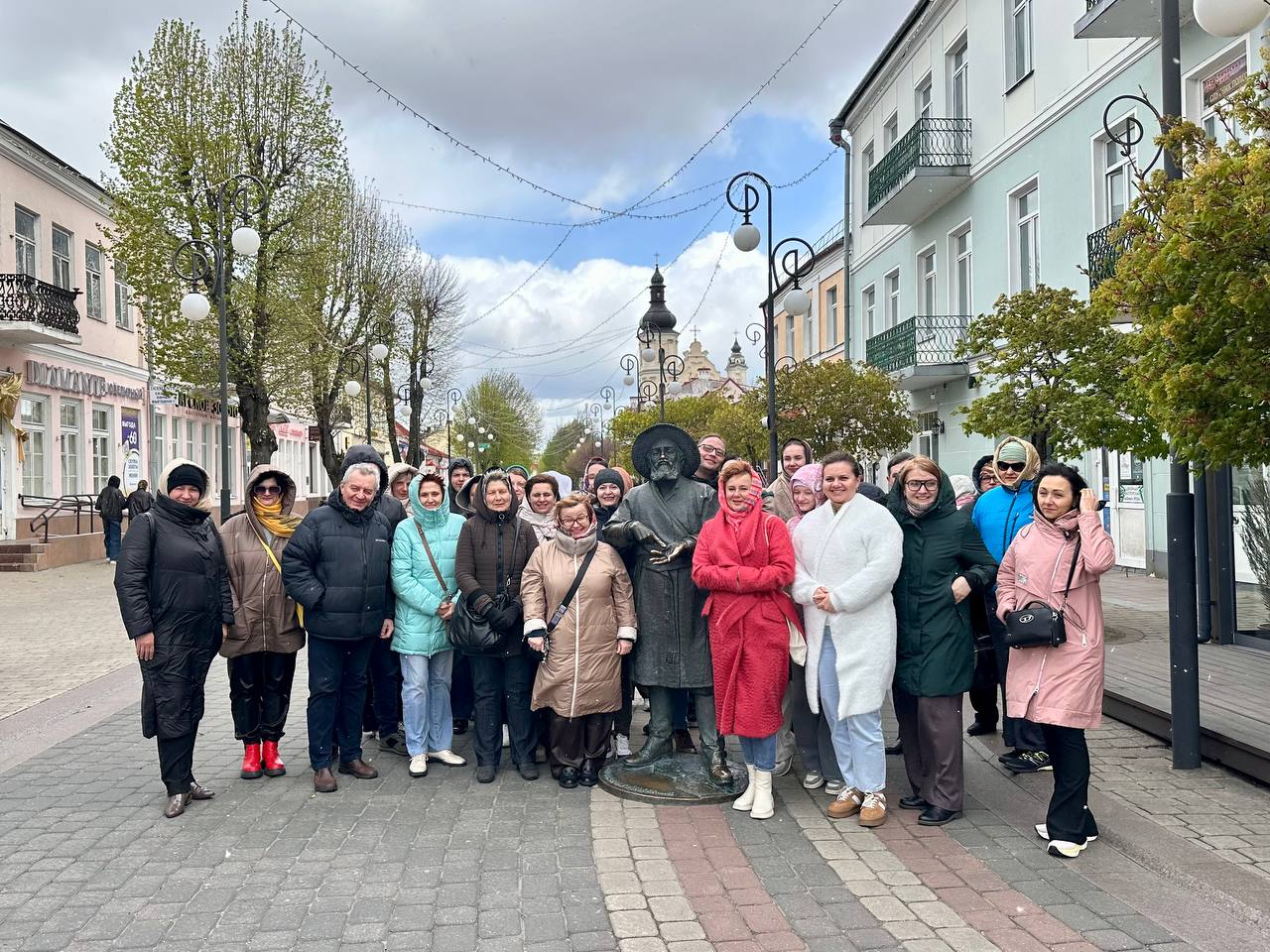 Участники экскурсии познакомились с архитектурным наследием города, который по праву называют «столицей Полесья». Программа включала прогулку по обновлённым центральным улочкам, где памятники XVII–XIX веков органично соседствуют с современными арт-объектами и изящными фонарями.