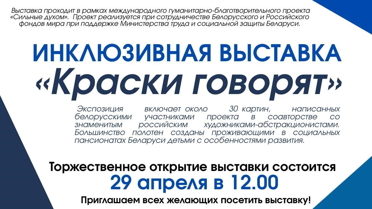Выставка проходит в рамках международного гуманитарно-благотворительного проекта «Сильные духом». Проект реализуется при сотрудничестве Белорусского и Российского фондов мира при поддержке Министерства труда и социальной защиты Беларуси.