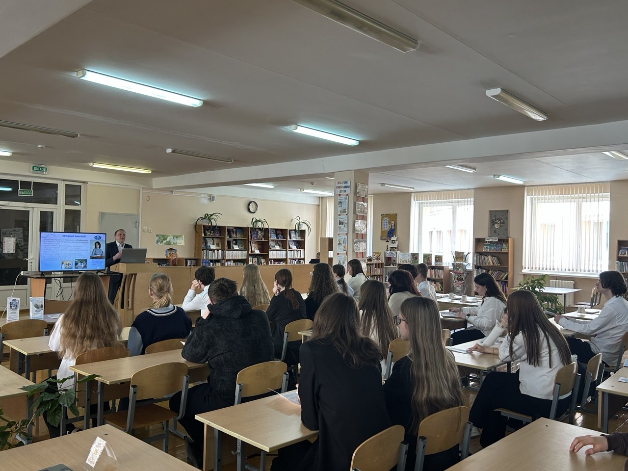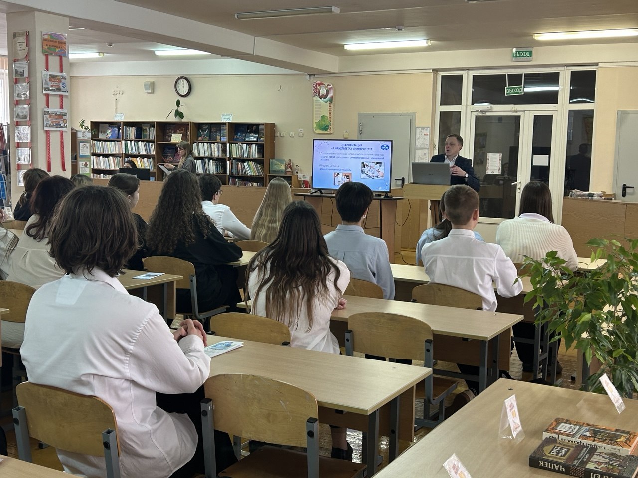 В ходе мероприятия Дмитрий Владимирович подробно осветил ключевые аспекты поступления и обучения в одном из ведущих медицинских вузов региона. Школьники получили исчерпывающую информацию о структуре университета, его факультетах и спектре специальностей, по которым ведётся подготовка будущих медицинских работников.