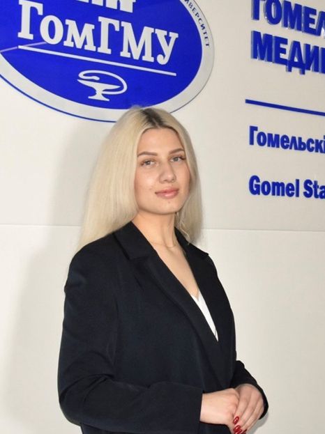 Декан факультета иностранных студентов, старший преподаватель кафедры общественного здоровья и здравоохранения с курсом ФПКиП магистр медицинских наук Окончила учреждение образования «Гомельский государственный медицинский университет» в 2014 году по специальности «Лечебное дело». В 2016 году – магистратуру при ГомГМУ по специальности 1-79 80 23 – «Общественное здоровье и здравоохранение», защитила магистерскую диссертацию по теме «Медико-социальная оценка формирования репродуктивного здоровья мужчин», присвоена степень магистра медицинских наук.